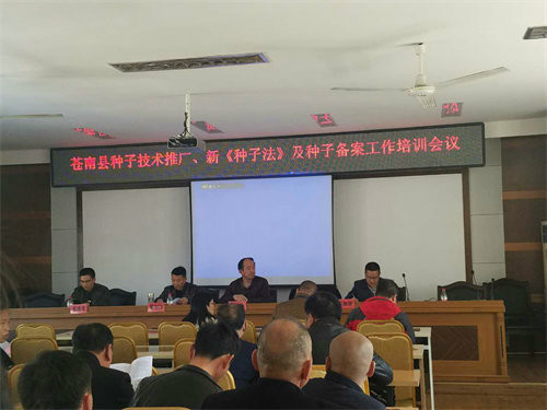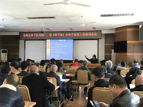 为贯彻落实新修订《中华人民共和国种子法》及配套规章,宣传和生产经营种子备案工作,保障各项措施落实到位,进一步提升我县种子管理水平和种子经营者的守法意识、责任意识、质量意识。日前,我县举办新《种子法》相关配套规章及种子备案工作培训会。本次培训邀请浙江省种子产业首席专家吴伟、温州市种子站副站长夏如达、温州市种子站高级农艺师吴建克等专家授课。局属法规科、执法大队、审批科、信息中心、科教站、种子站及来自全县100余家种子经营店负责人参加培训。培训会由县农业局总农艺师苏加前主持。